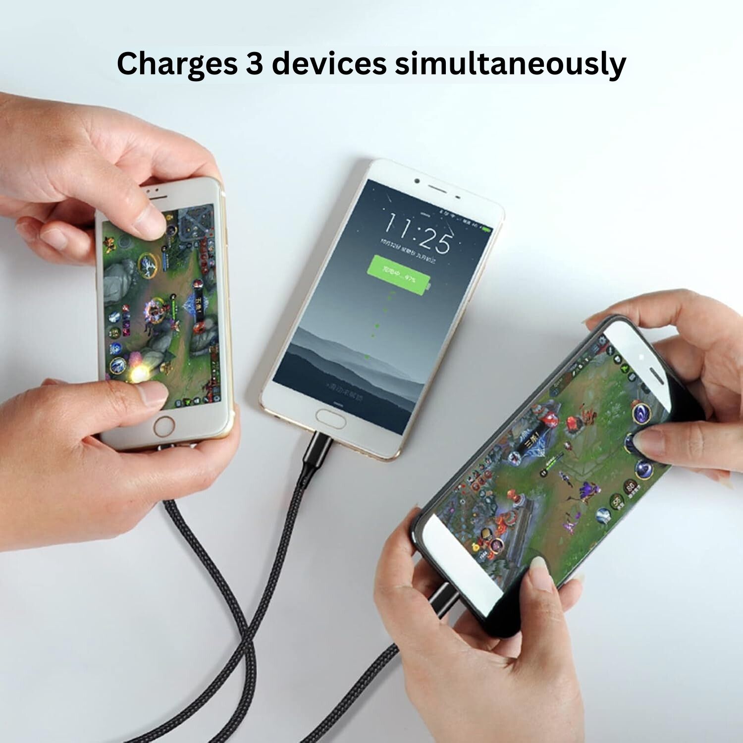 - You can charge three devices simultaneously.