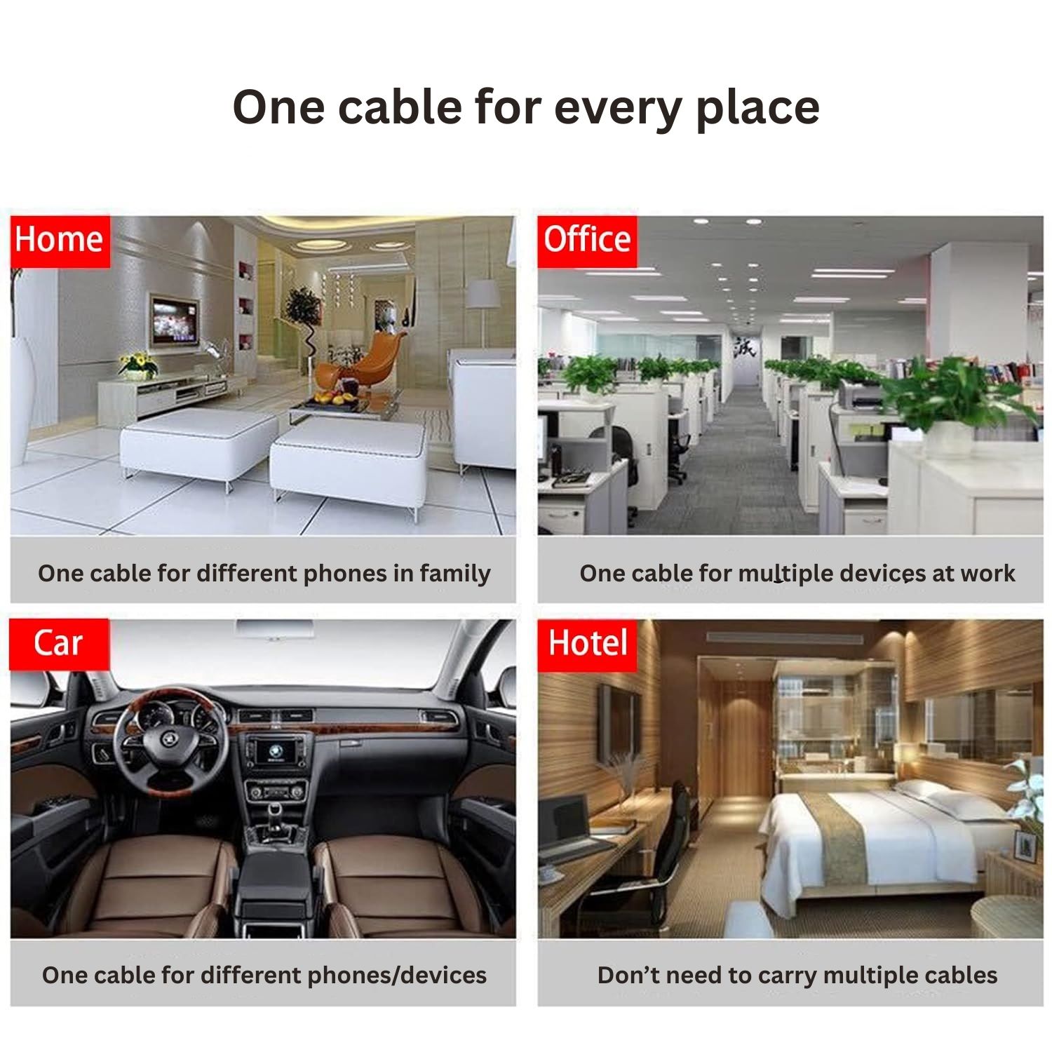 - Don’t need to carry multiple cable for travel, office and any occasion.