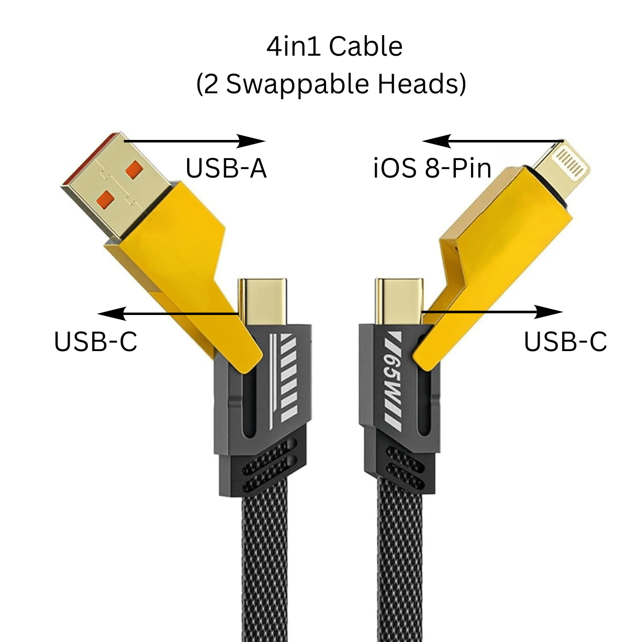 - 4-in-1 Multi-Connector Cable (Type-C / Lightning / USB-A)